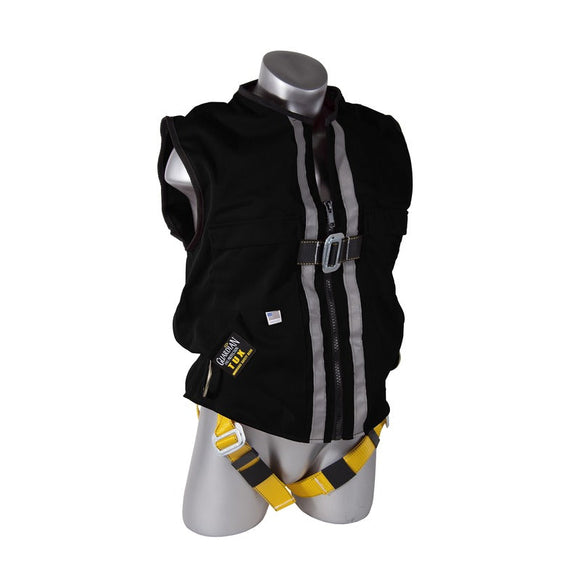 Featuring the utmost in efficiency and utility the Construction Tux Harness will save both you and your bottom line from harm. Equipped with side D-rings that make it ideal for work positioning applications the Construction Tux is ideal for concrete or rebar contractors. The fall protection harness is also sewn into an external vest which reduces the possibility for tangling or contamination of harness webbing.