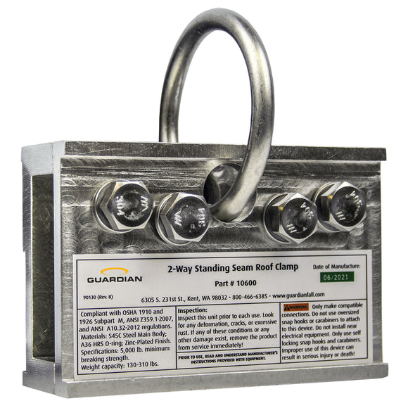 Simple Installation and Easy Use: The 2-Way Standing Seam Roof Clamp requires no complex setup or tools for installation. Its user-friendly design allows workers to quickly and easily secure their fall protection system, maximizing efficiency and minimizing downtime.