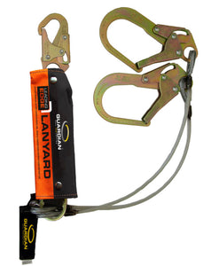 Guardian's leading-edge-capable Cable Lanyard combines the lightweight durability of a fixed-length lanyard with the flexibility of foot-level tie-off that permits up to 12' of free fall. Cable Leading Edge Lanyards are constructed with vinyl-coated 1/4" galvanized steel cable combined with our proprietary high-efficiency external shock absorber, which keeps maximum and average arrest forces low during deceleration. Cable Leading Edge Lanyards are available in single- or dual-leg configurations with steel rebar or snap hooks. A high-visibility orange shock pack cover helps confirm proper application suitability even from a distance.
