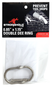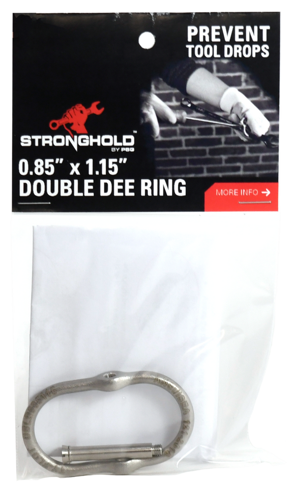 DOUBLE D-RING, SMALL (Single) - The patented Double D-Ring is an easily installed attachment point for open- and closed-end wrenches or other compatible tools. Its stainless-steel construction and anti-backout captive pin provide both long-term durability and security, giving the worker at height confidence on todayβs demanding jobsites. The Double-Ring is compatible with a variety of fixed-length, bungee, or retracting tool tethers, making it an essential part of a comprehensive dropped tools prevention program.