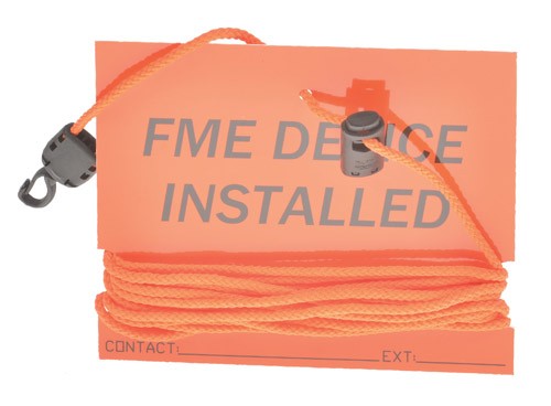 Helps aid in the prevention of FME Device being left in systems. Alerts workers that there is an FME Device Installed. Printed on both sides for ease of viewing with FME DEVICE INSTALLED and Contact and Ext.