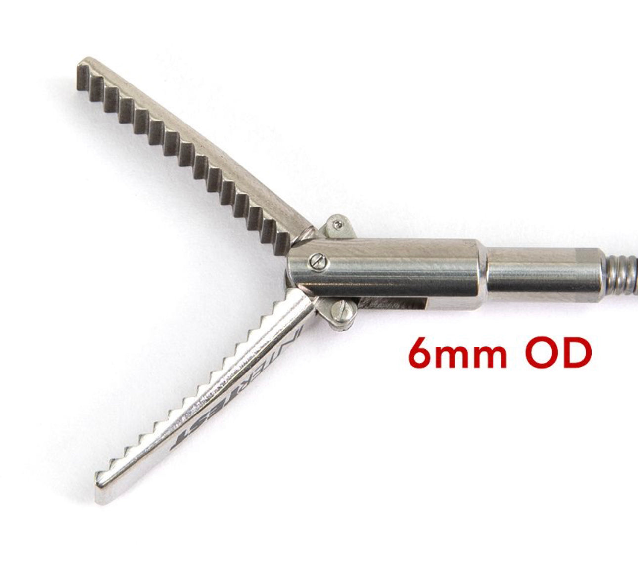 Safely retrieve foreign objects from inaccessible areas with the 25 foot length iGrabβ’ FOSAR 6mm Gripping Pliers Manual Retrieval Tool. Operating standalone, with articulating guide tubes or video probes, these stainless steel FOSAR instruments bend through small, twisting passages.