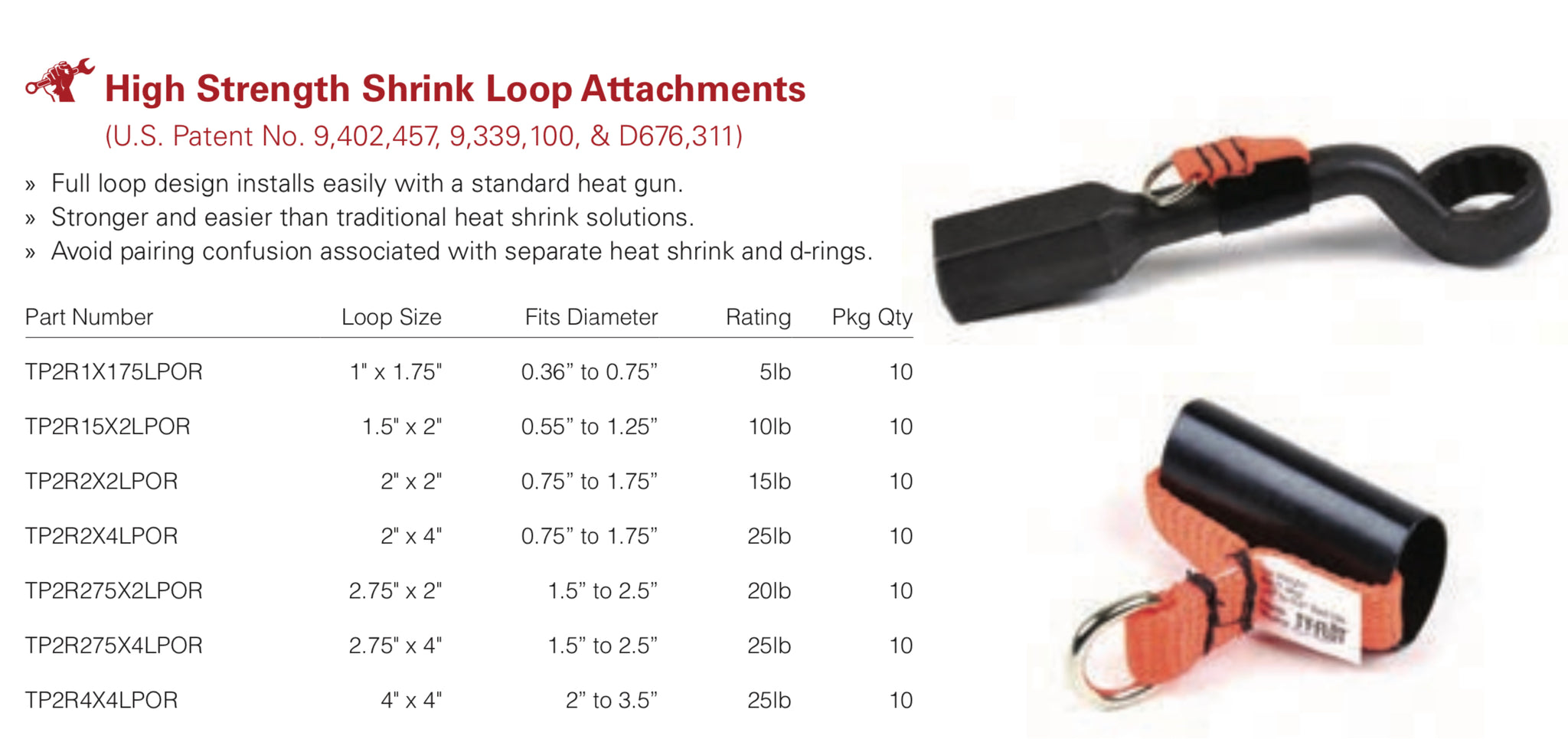 Β» Full loop design installs easily with a standard heat gun.